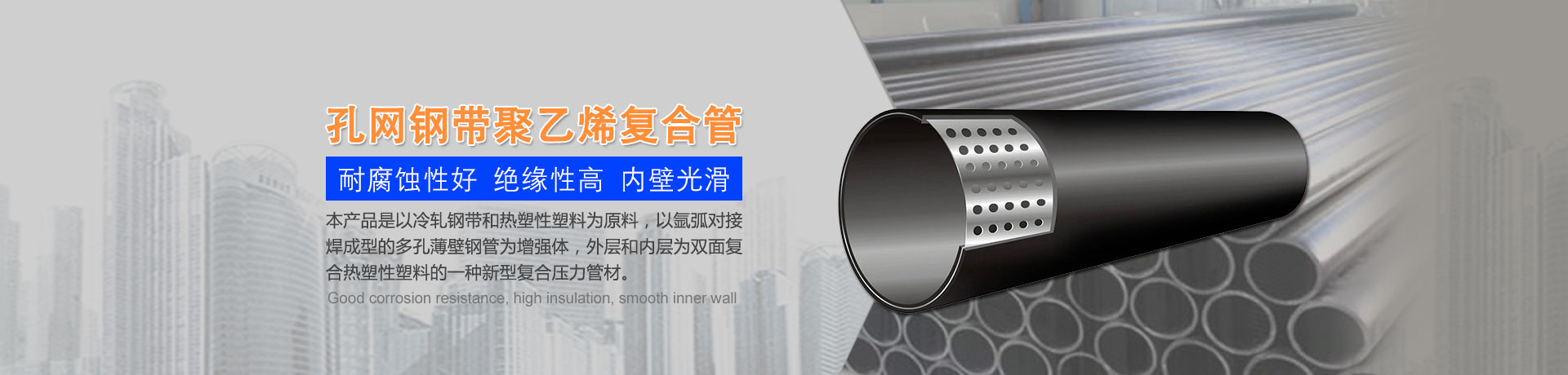 我們主要生產(chǎn)銷售:鋼絲網(wǎng)骨架復(fù)合管、鋼絲網(wǎng)骨架聚乙烯復(fù)合管、孔網(wǎng)鋼帶聚乙烯復(fù)合管、鋼骨架聚乙烯塑料復(fù)合管、電熔管件、HDPE中空壁纏繞管、HDPE內(nèi)肋增強(qiáng)螺旋波紋管、HDPE結(jié)構(gòu)壁增強(qiáng)B型管等一系列產(chǎn)品。復(fù)合管以其特有的防腐蝕、耐磨、耐高溫、抗嚴(yán)寒、耐壓、抗蠕變、穩(wěn)定性好、安裝方便等特點(diǎn),逐步取代各類金屬管件和塑料管件,被應(yīng)用于消防、石油、化工、供水、采礦、海水輸送等領(lǐng)域...